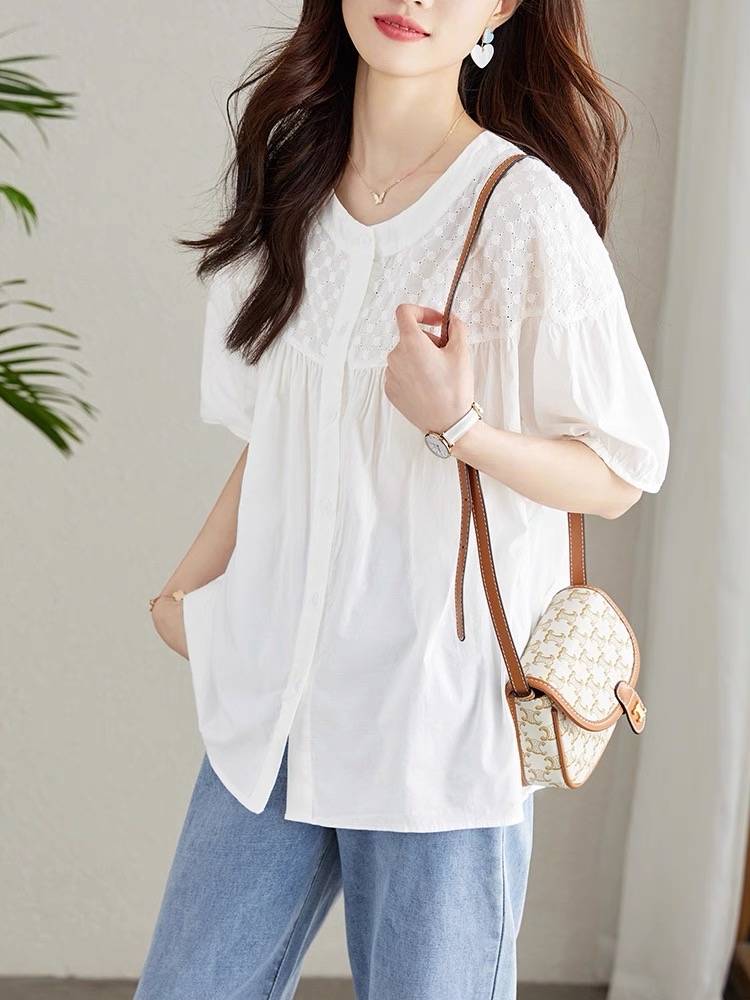蕾丝外套与牛仔裤的搭配,则展现出了风格反差的时尚魅力。简约的白色蕾丝外套,清爽中不失精致与柔美,是这组搭配的灵魂所在。细腻的纹理在光线照射下呈现出丰富的层次效果,金色扣子的点缀更是增添了几分优雅高贵的气质。与率性不羁的牛仔裤搭配,蓝白的干净色调给人一种轻松惬意的松弛感。